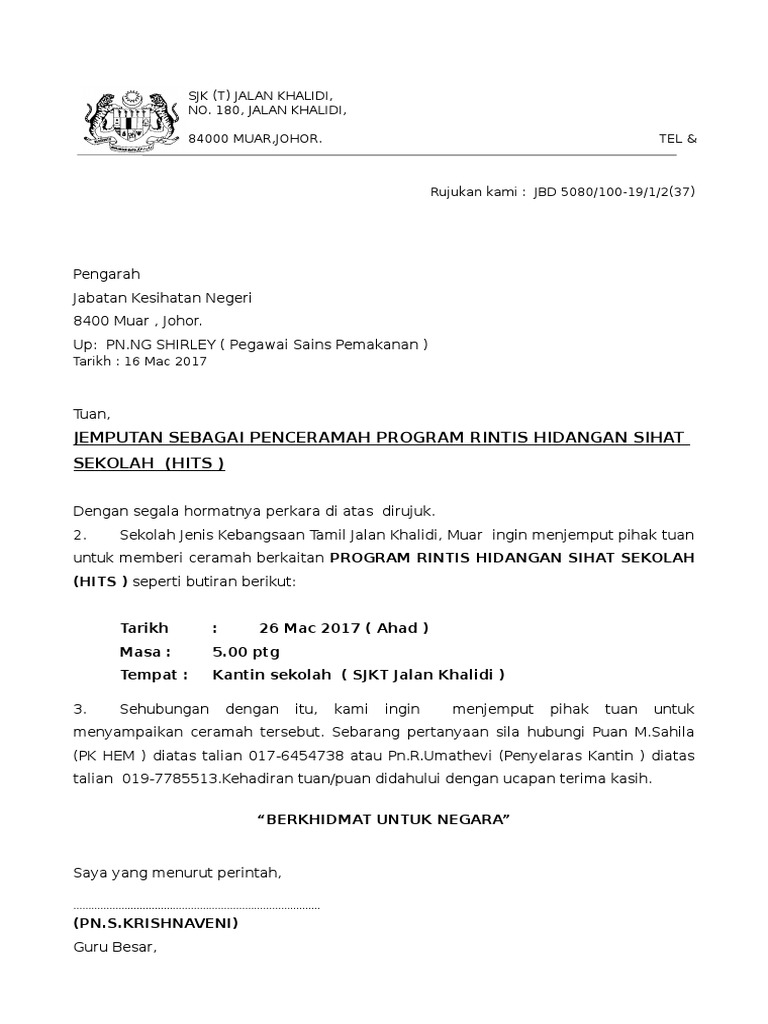 Surat Rasmi Jemputan Penceramah Surat Rasmi C