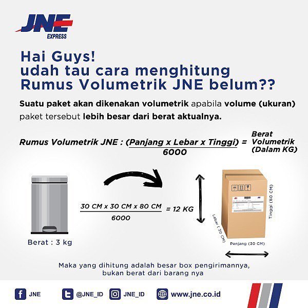 Jne Bdo Na Twitteru Masih Bingung Menghitung Volumetrik Jne Suatu Paket Akan Dikenakan Volumetrik Apabila Volume Ukuran Paket Tersebut Lebih Besar Dari Berat Aktualnya Rumus Volumetrik Jne Panjang X Lebar X Tinggi