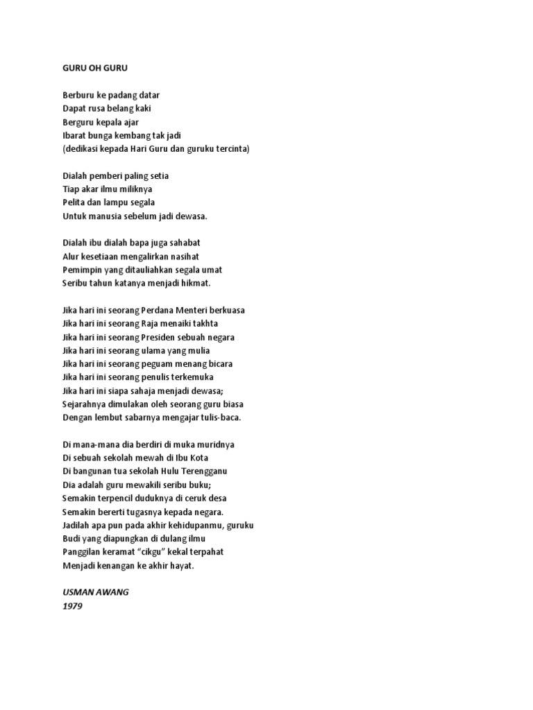 Guru Oh Guru Berburu Ke Padang Datar Dapat Rusa Belang Kaki Berguru Kepala Ajar Ibarat Bunga Kembang Tak Jadi Dedikasi Kepada Har Guru