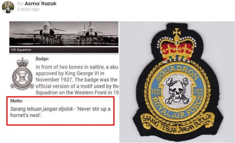 L 8 On Twitter Sarang Tebuan Jangan Dijolok Peribahasa Melayu Yg Dijadikn Sbg Motto 100 Squadron Uk Royal Air Force