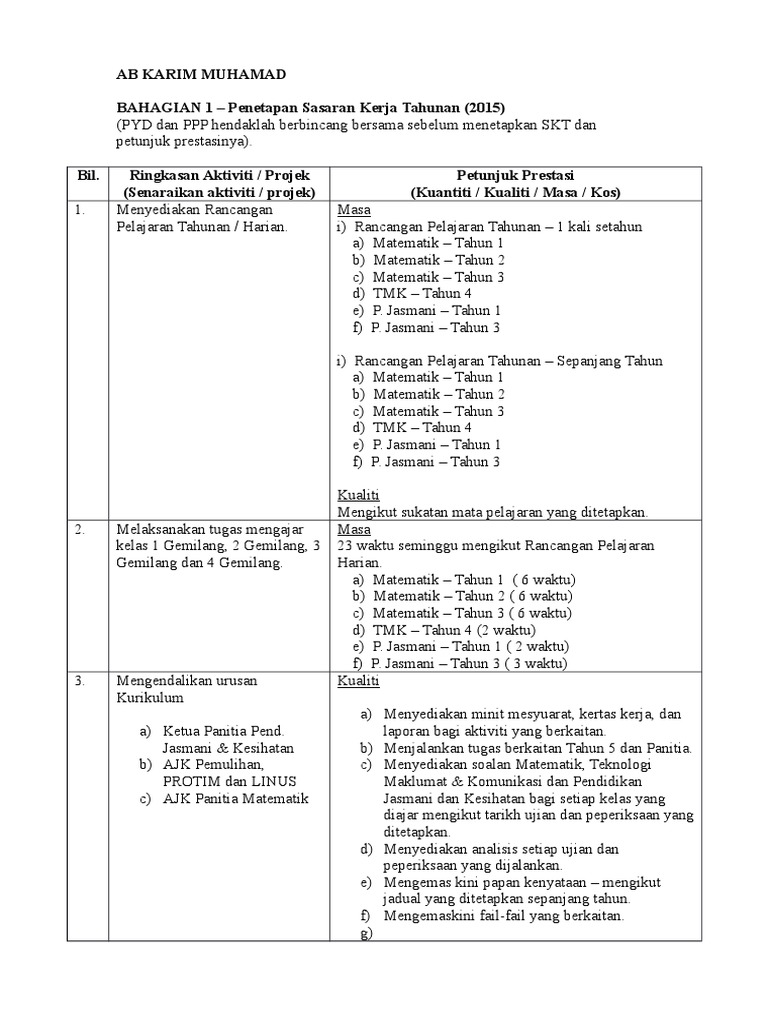 Contoh Sasaran Kerja Tahunan Skt 2015