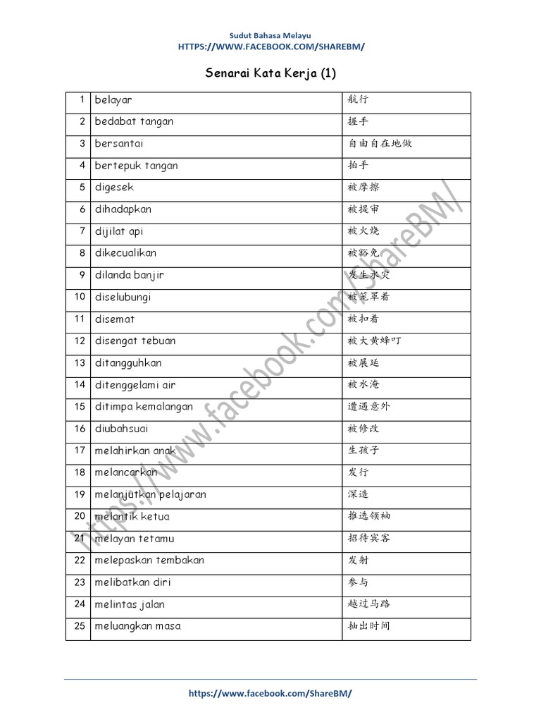 Lembaran Kata Kerja Aktif Bahasa Melayu Motivasi Media Sosial Facebook