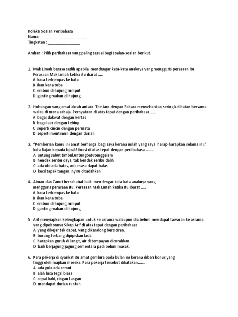 Koleksi Soalan Peribahasa